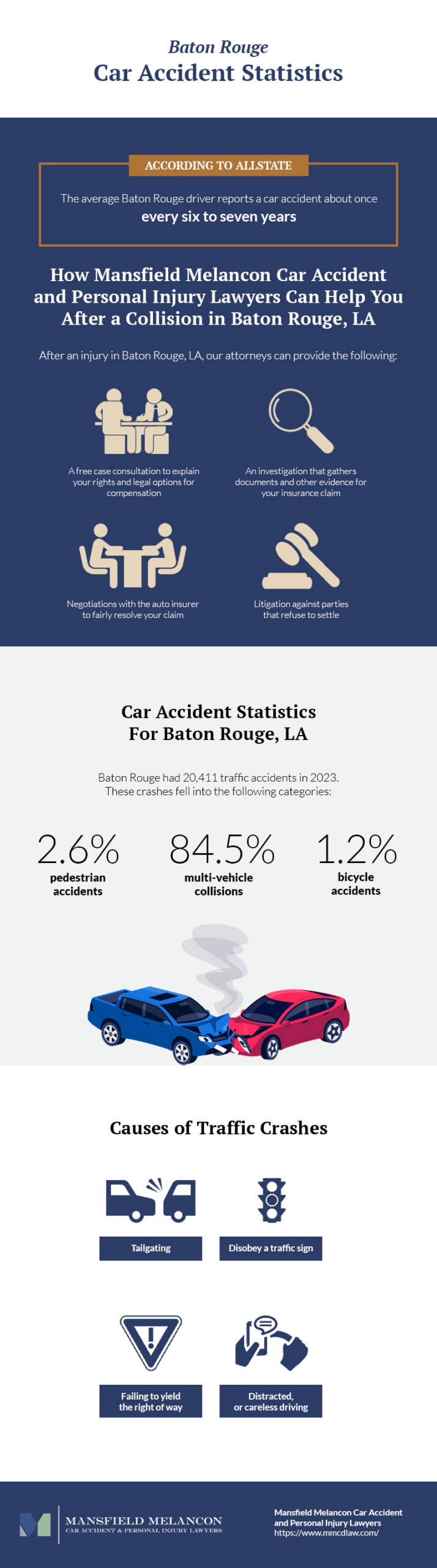 If you were injured in a collision, an attorney from Mansfield Melancon Car Accident and Personal Injury Lawyers can review your case and outline your legal options. Contact our Baton Rouge law firm at (225) 263-4787 for a free consultation.